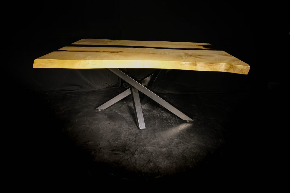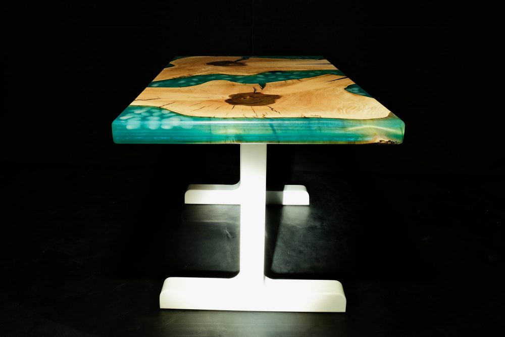 The wood, by itself, or in combination with epoxy resin in different colors, as well as different finishing layers, will offer you a wide choice when creating your perfect table, adapted to style, length and width.